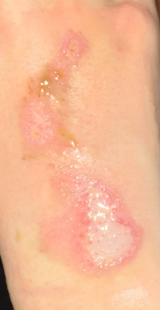 올려주신 사진상 아래 부분의 찰과상의 경우 피부 손상의 정도가 가볍지 않아 상처 회복시에도 추후 반흔 등이 남을 수 있어 진료를 보시고 적절한 조치를 받는 것을 권해드립니다.