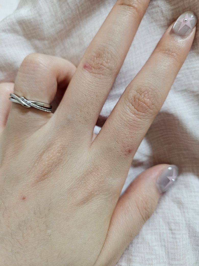 다 모기 물려서 생긴자국인데 손바닥이랑 손가락은 지금 몇년째 사라지지를 않네요