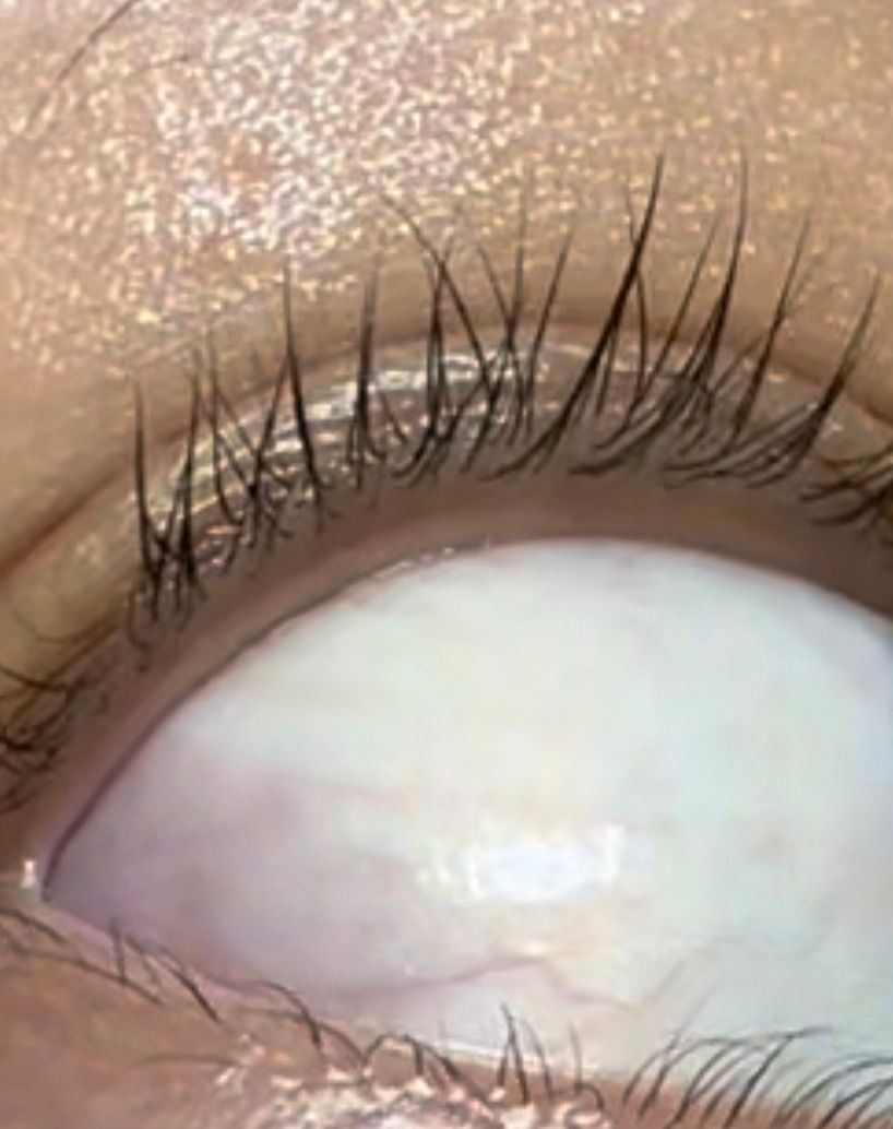 눈알 양 끝에 이런 색의 반점 같은게 보이는데요.