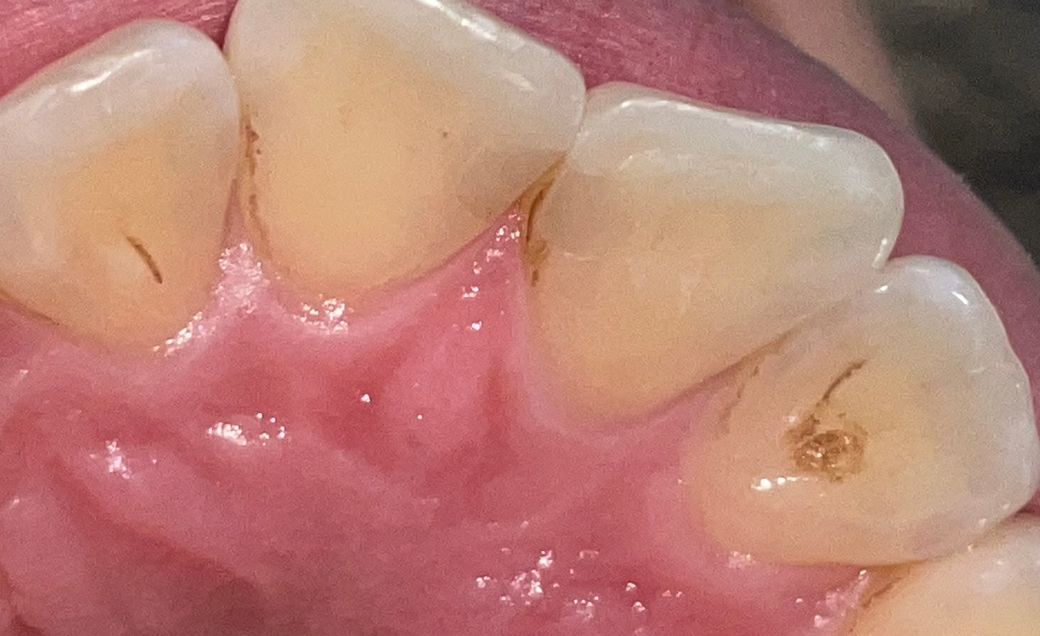 앞니 사이가 간질거리고 까만선이 보여요