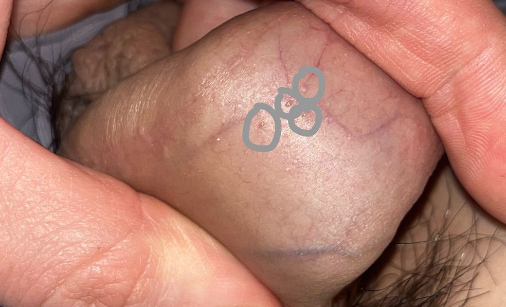 사진 범위만 보면, 표시된 부위는 거칠게 튀어나온 곤지름(HPV 사마귀) 형태와는 다소 다릅니다. 방어적으로 말씀드리면 사진만으로 100% 단정은 불가합니다.