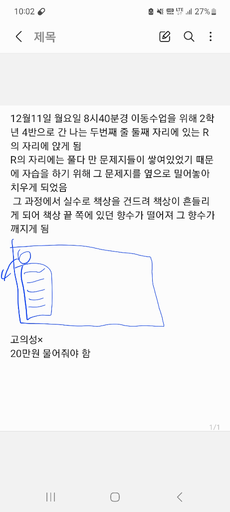 100% 모든 책임을 부담하실 이유는 없다고 판단되며, 고가의 향수를 위험하게 책상 끝에 올려둔 것은, 충분히 누군가 지나가다가 칠 수 있음을 예상할 수 있었음에도 그렇게 한 것이므로 향수 소유자에게도 당연히 책임이 인정될 수 있습니다. 과실상계에 따라서 적어도 30%정도는 책임이 있다고 봐야 합니다.