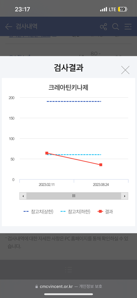 cpk의 경우 수치가 참고범위 이상일 때 문제로 삼습니다