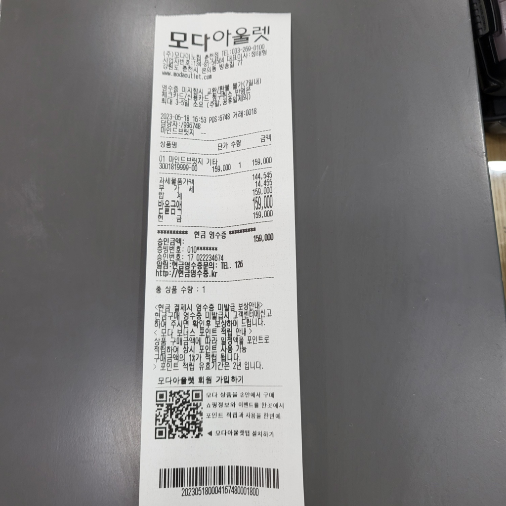 옷은 23년 5월 18일 구매되어 선물 받았으며,