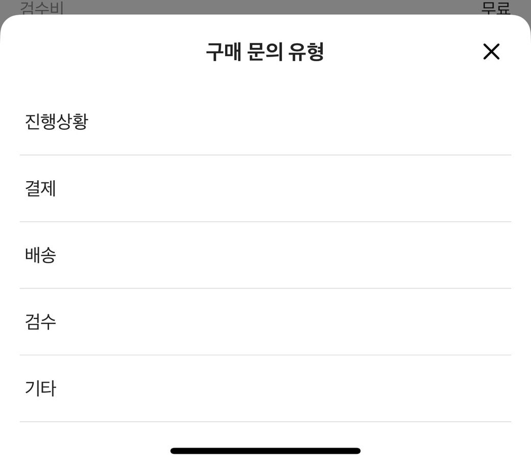 [문의하기]에서는 '주문/결제' 또는 '취소/환불' 관련 항목을 선택해 문의할 수 있습니다.