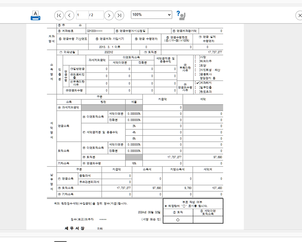 연금계좌랑 퇴직소득이 안잡혀있드라구요.