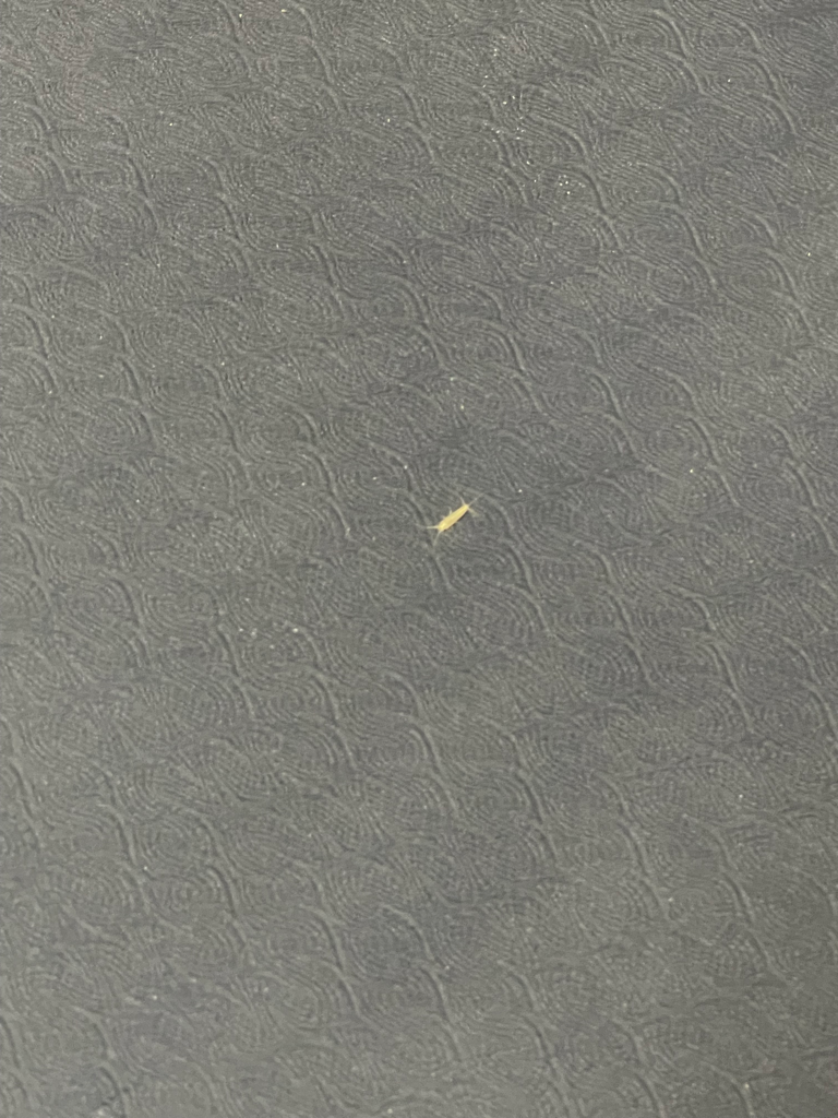 사진으로 구글링한 결과 한점털보톡토기 인것같습니다. 더듬이와 더듬이 사이의 한 개의 검은 점과 눈이 있는 자리를 제외하고 전체적으로 연노란색입니다.