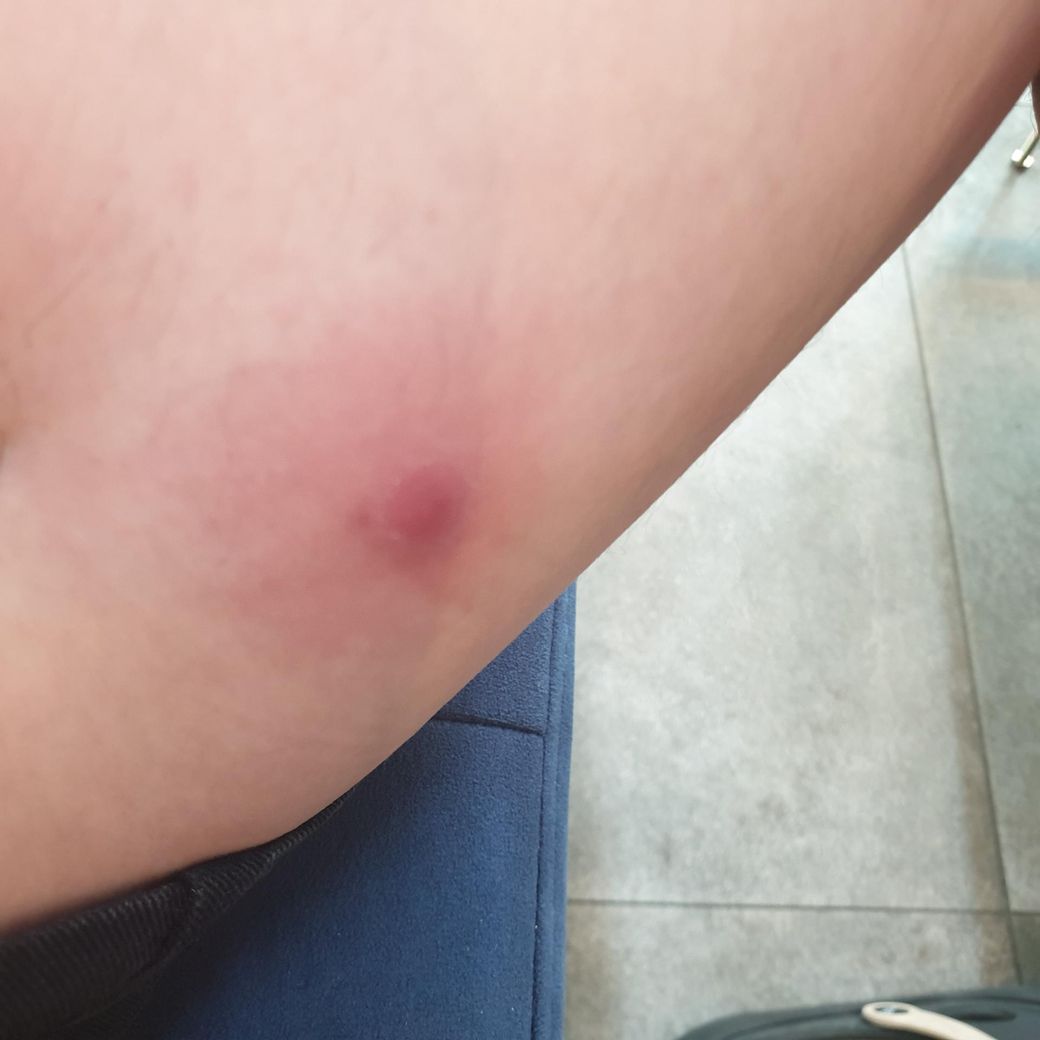 올려주신 사진으로 미루어 모기에 물린 부위의 염증 반응으로 보입니다.