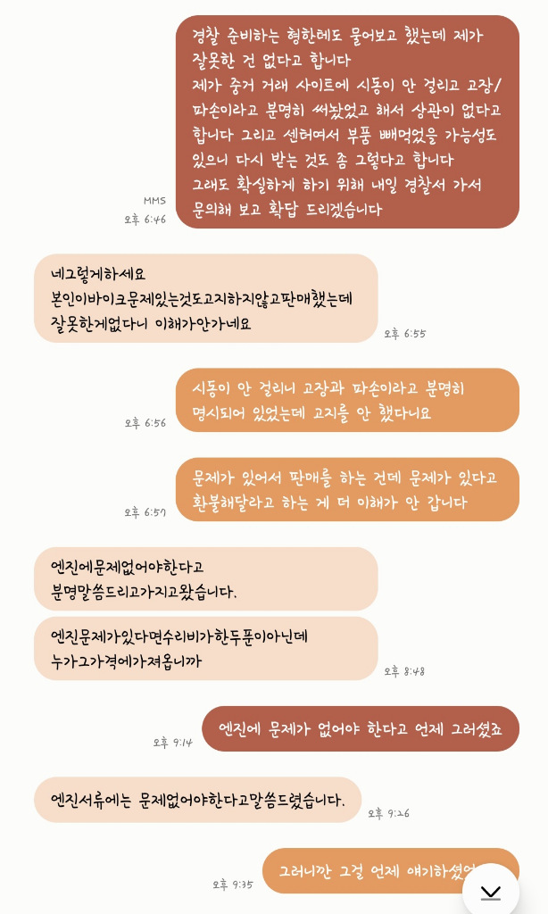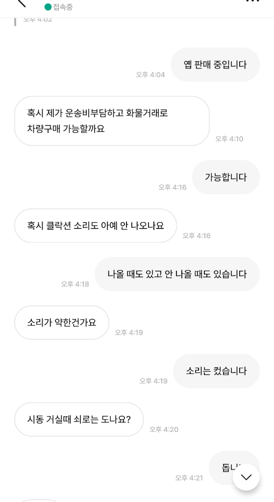 저도 엔진에 이상이 있는지 몰랐고 시동이 안 걸리길래 팔 때도 됐고 다른 바이크를 사려고 판매를 했습니다