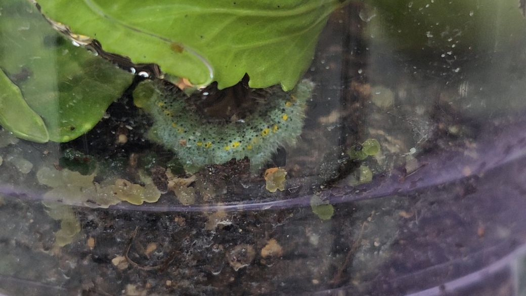 일반적으로 애벌레는 자신의 배설물을 몸에서 멀리 배출하는 성향이 있습니다. 아마도 배설물이 붙어있는 경우는 드문 경우입니다. 몸을 U자 형태로 휘는 행동을 반복한다면 이것은 피부를 늘려 탈피를 준비하는 과정일 수 있습니다. 애벌레는 성장하는 과정에서 여러 번 탈피를 합니다.