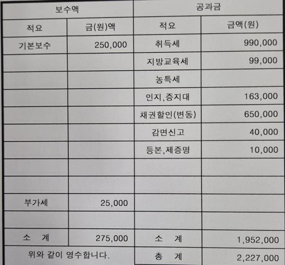 그리고 이거 말고 추가로 들어갈 건 법무사비용인 거 같은데 이렇게인 거 같은데 은행에서 연결해준 법무사 견적서도 한 번 봐주세요.