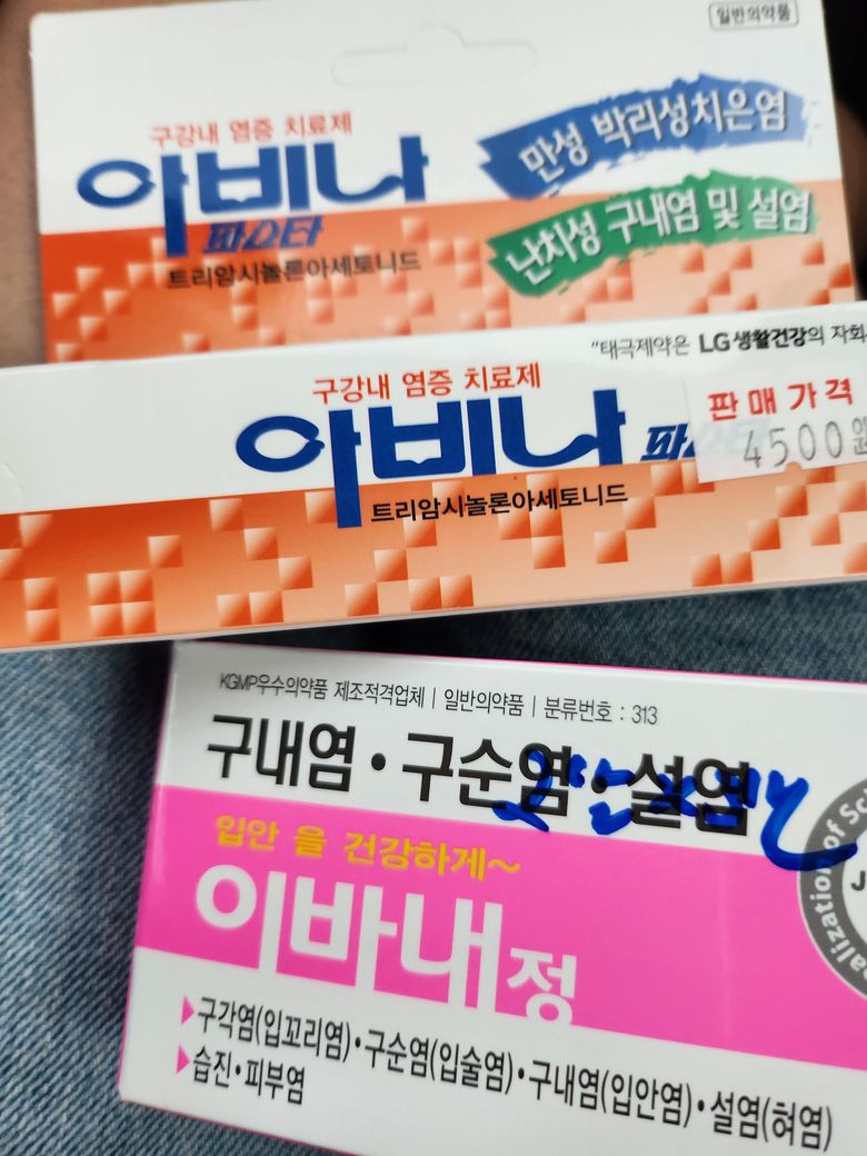 먼저 위에 약들을 2주째 먹고 있었는데 구내염이 너무 심하게 나서 구내염약 + 연고를 사왔습니다.