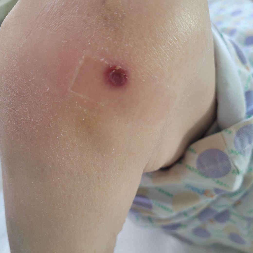 주변부 발적이나, 통증, 진물이 나오는 경우라면, 염증조절이 안되는 양상일 수 있으니 이 경우에는 정형외과 내원해보셔야 합니다. 답변 도움되었기 바랍니다. 감사합니다.