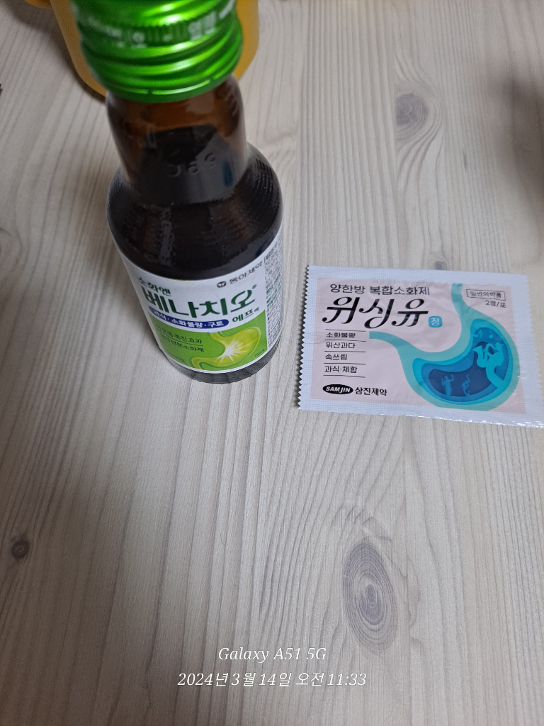 식후에 활짝 소화제 알약 대신 위싱유 양한방 복합소화제 1포와 베나치오 소화제 1병을 함께 복용을 한 경우 소화가 많이 안될시 이렇게 복용을 해도 상호작용이 있지 않기에 함께 복용가능합니다.