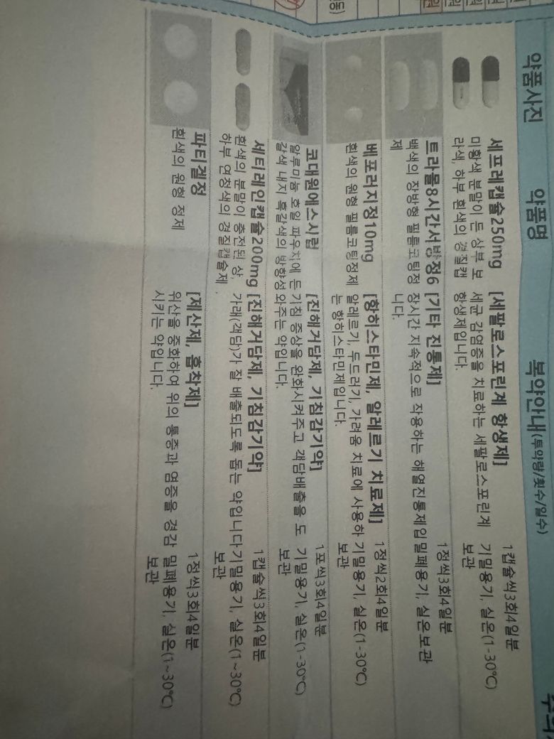 오늘 남편 감기몸살때문에 병원진료보고 약 처방을 저렇게 받았는데