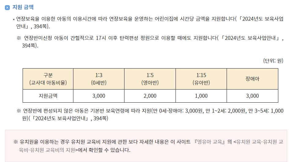 어린이집 연장보육 금액 책정이 어떻게 되나요?