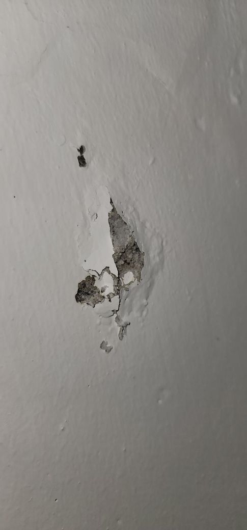 비가오면 빗물이 벽으로 스며 들어서 그럽니다 이럴때는 그냥 기다려야죠 마를때까지요 다 마르면 페인트