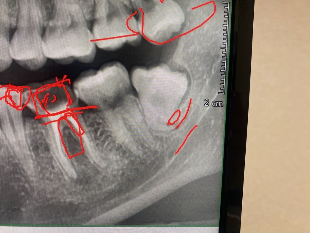 아래 사랑니부터 3번째 신경치료한 이 뿌리염증 있는건가요?