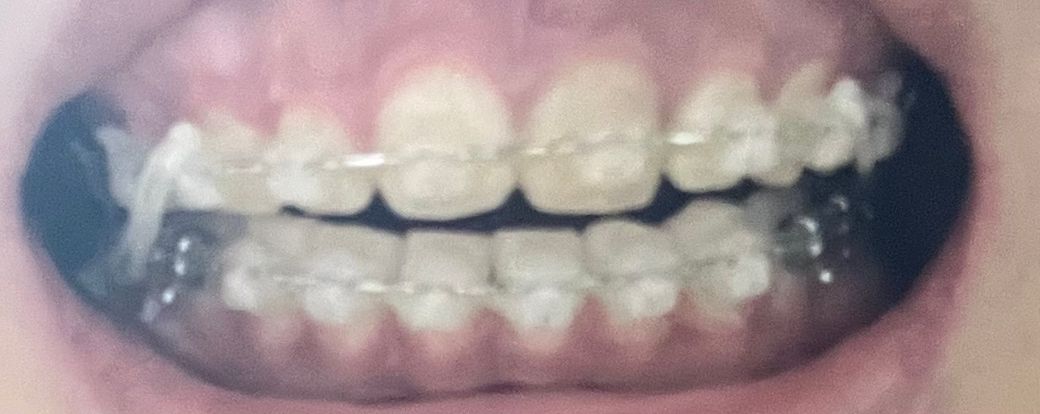 현재 교정중이고요, 송곳니 잇몸 높이가 반대편 송곳니 잇몸 높이와 차이가 많이 납니다ㅠㅠ 이빨은 잘 닦은 것 같은데, 교정 중에 부작용이 일어난 걸까요? 퇴축이 심해 보이나요?