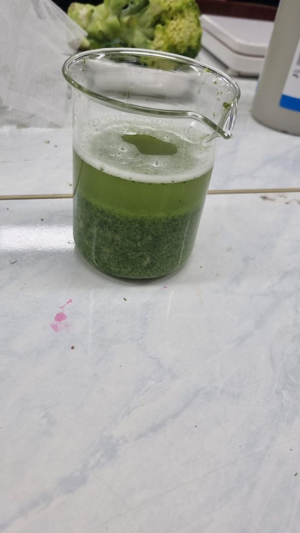 밑에 사진은 염화나트륨이랑 세제 넣은 용액에 브로콜리 빻아서 넣고 섞은뒤 모습이에요.
