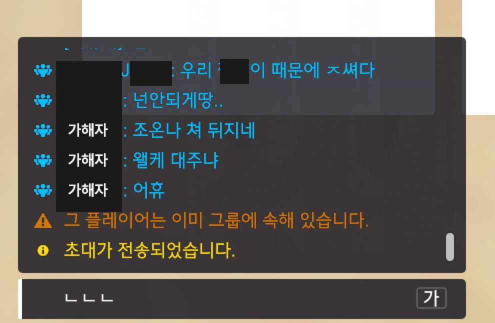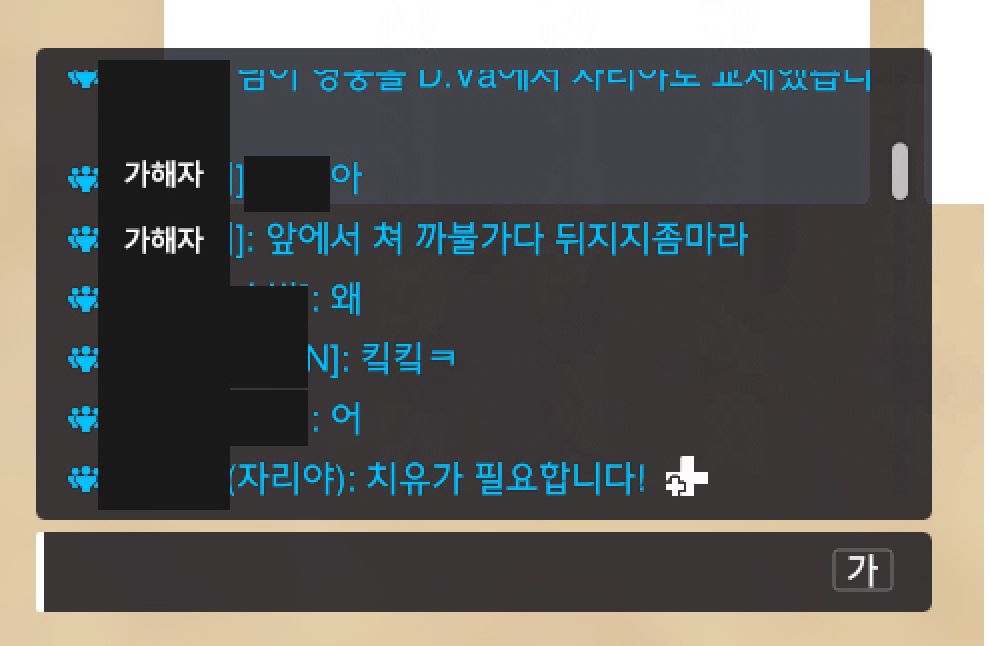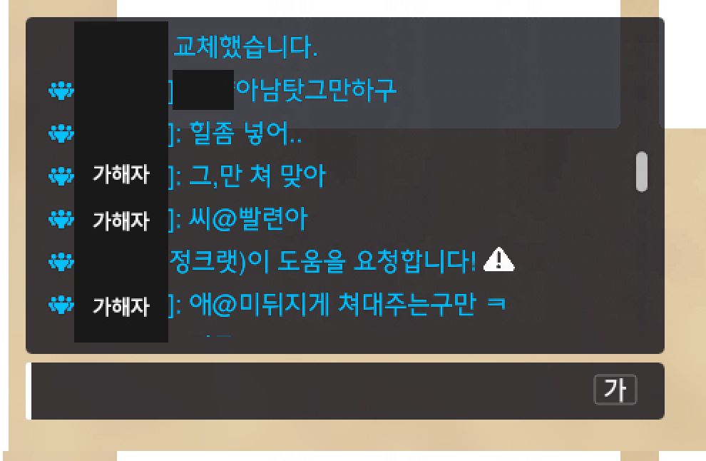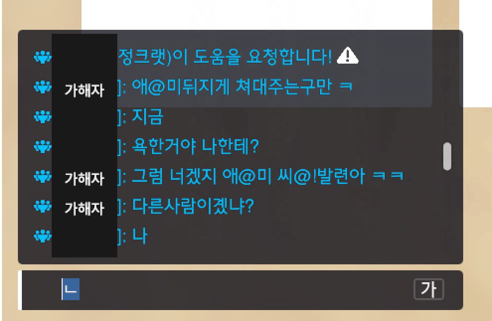게임중 욕설을 들었습니다. 내용은 아래와 같고 욕설한사람을 가해자라 칭하겠습니다.