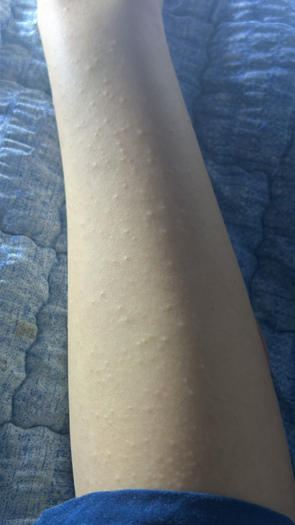 평소와 다를 거 없이 먹고 자는데 언제부턴가 오른팔에만 두드러기가 났어요ㅠ 가려움, 통증 전혀 없어요 단순히 소름 돋은 것도 아니고 뭘까요 한 삼일째 이 상탠데 안없어지나요..?