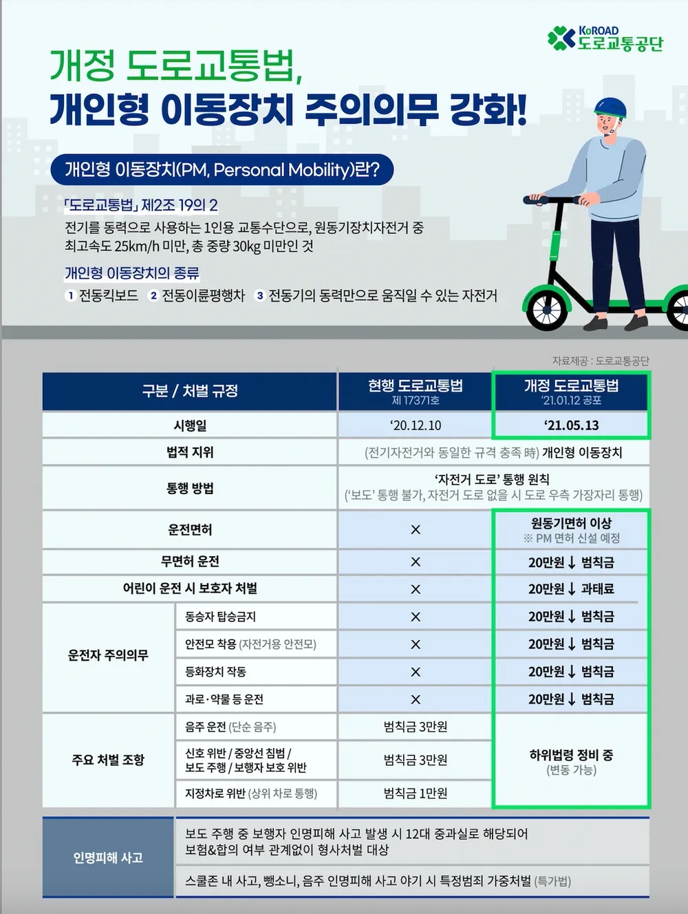 만 16세 이상부터 개인형 이동장치 전동 킥보드 운전이 가능합니다