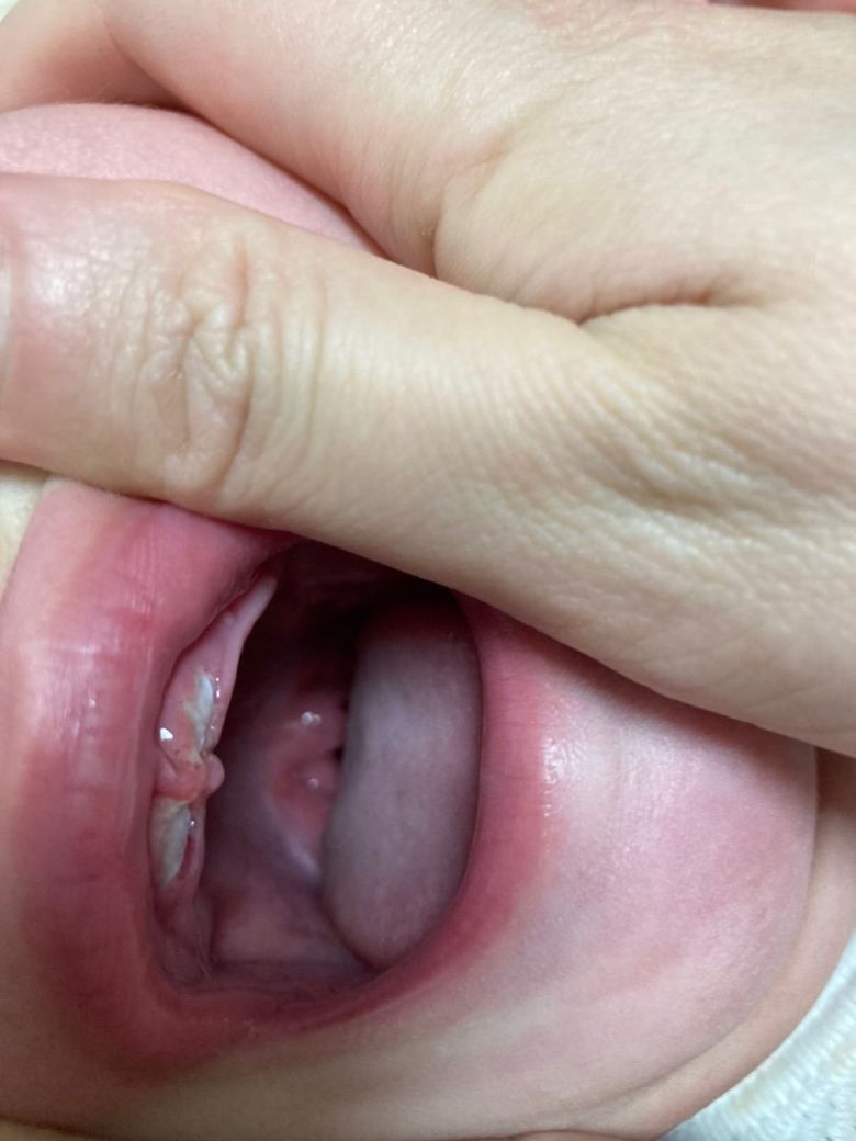 질문하신 내용에 대하여 아래와 같이 답변 드립니다.사진으로만 봤을때, 상악 유치(정확히 상악유중절치) 2개가 맹출되고 있는것으로 보입니다.
