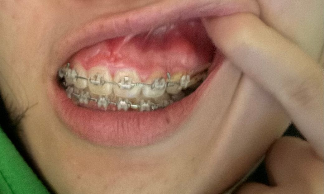 고무줄을 끼고 있는 상태에서 양치를 하다가 저 사진 속 부어오른 잇몸 부분을 세게 쳐버린 것 같아요