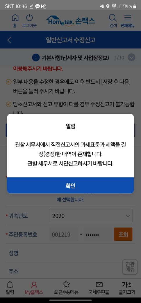 아마 삼쩜삼의 세무대리인을 통한 경정청구가 한번 이뤄졌어서 이러는거 아닐까 싶은데, 어떻게 해야할까요? 관할 세무서에 전화를 해봐야하나요?