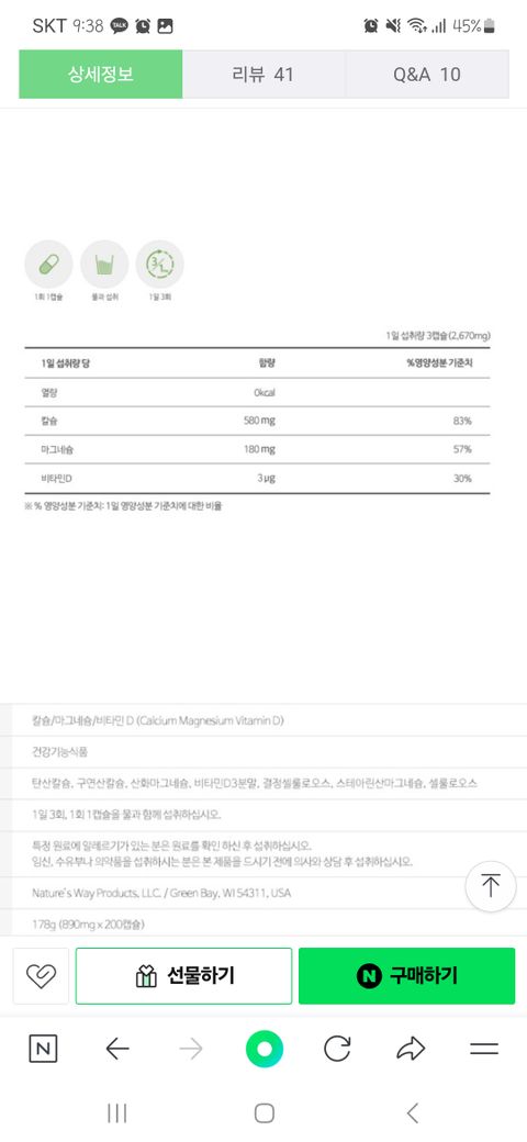 이 영양제들은 매일 먹어도되는데 칼슘마그네슘은 아침 1알, 저녁 2알로 드시는게 더 효과가 좋아요.