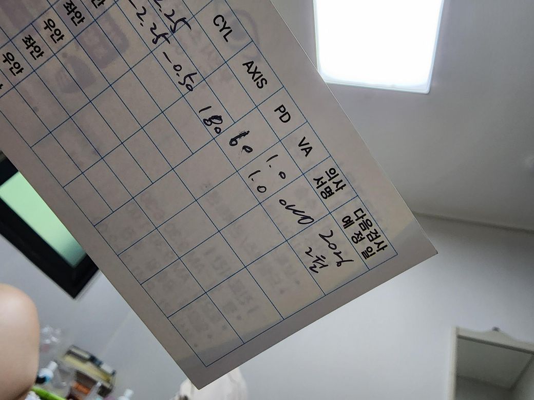 사진이 좀 잘리긴 했는데 양측 모두 -2.25D 인 상태로 표시되어있는것 같고 이 경우에는 교정을 하지 않아도 됩니다.