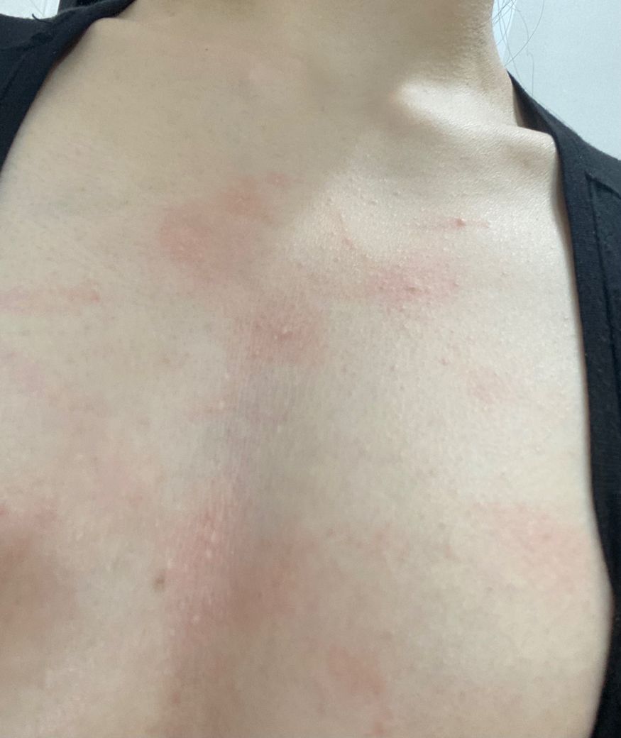또 하나 흔한 원인은 말라세지아(곰팡이) 모낭염입니다. 이 경우 가슴, 등, 어깨에 작은 하얀 구진이 여러 개 동시에 생기고, 여드름처럼 보여도 압출되지 않으며 갑자기 퍼지는 특징이 있습니다. 간지러움이 동반되는 경우도 많지만 없어도 가능합니다.