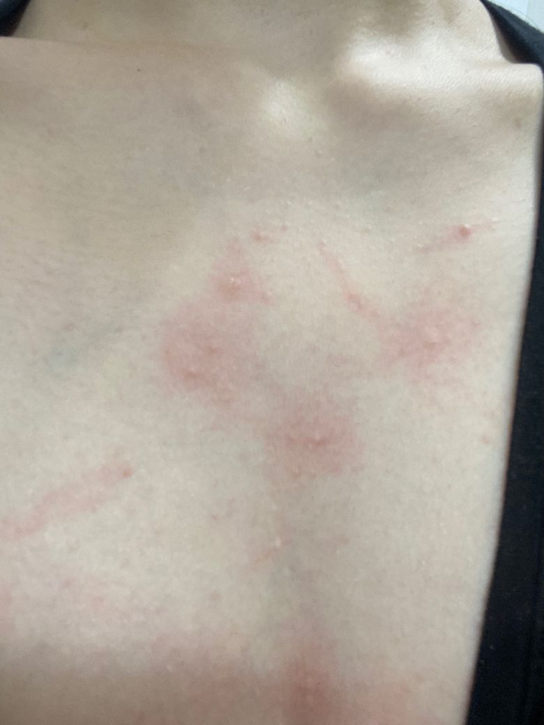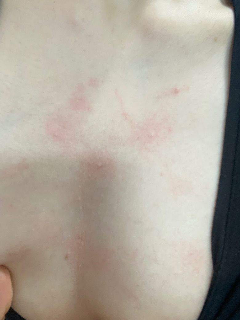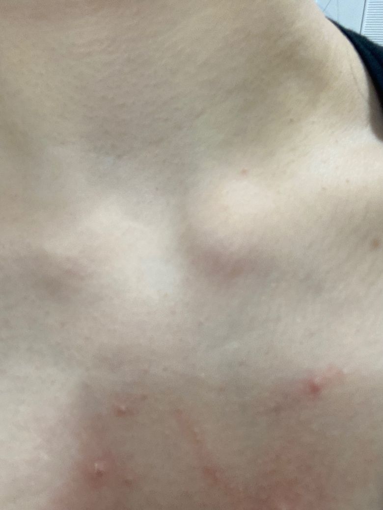 가슴골? 가운데랑 가슴 윗쪽에 하얀색 여드름 같은것과 좁살 여드름? 같은데 있어요 ㅠㅠ 뭘까요 ..