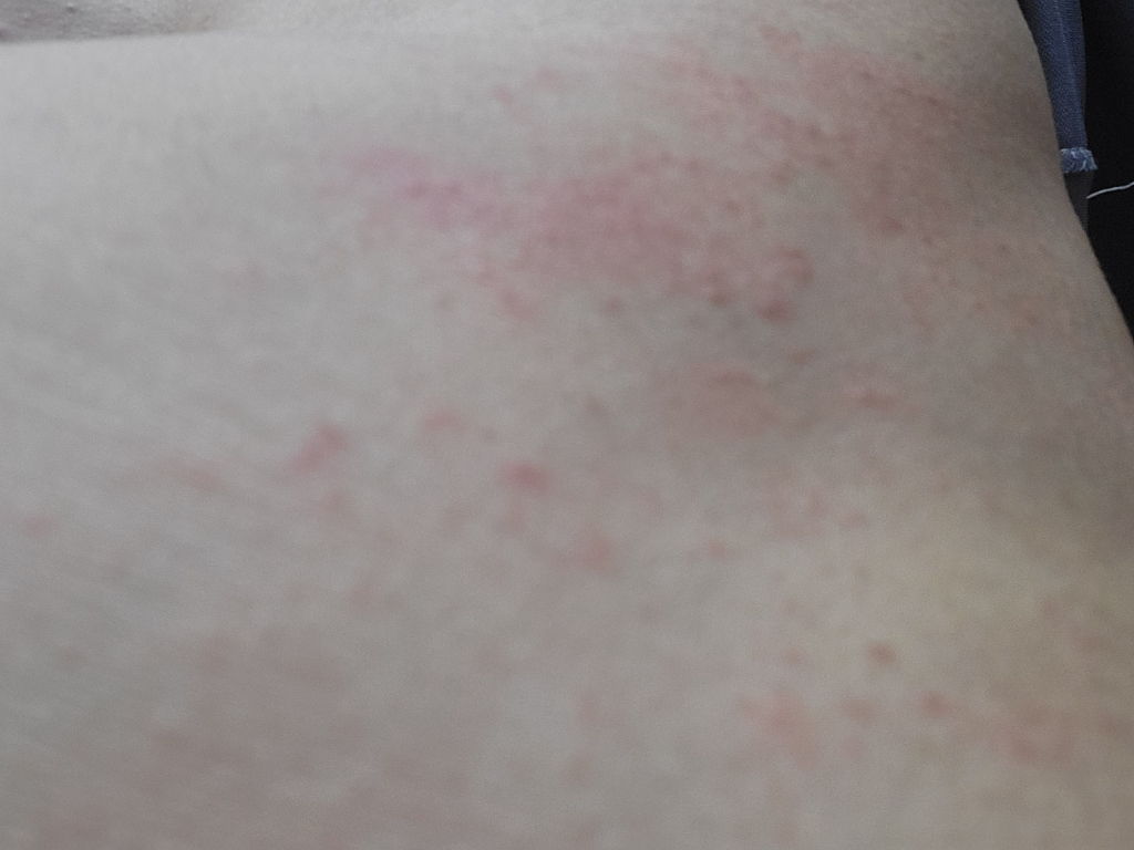 위 사진처럼 작은 발진이 전신에 발생해서 피부과에서 연고제와 알레르기약을 처방받아 먹고있는데 저녁이 되면 가려움때문에 잠도못자고 너무 가려워 파스를 비르고 잘 정도입니다.