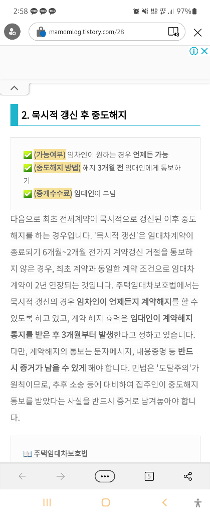 2. 계약서에 정한 바가 없다면 묵시적 갱신 후 중도해지가 아니라 계약기간이 만료되어 나가는 것이라면 복비를 부담할 이유가 없습니다.