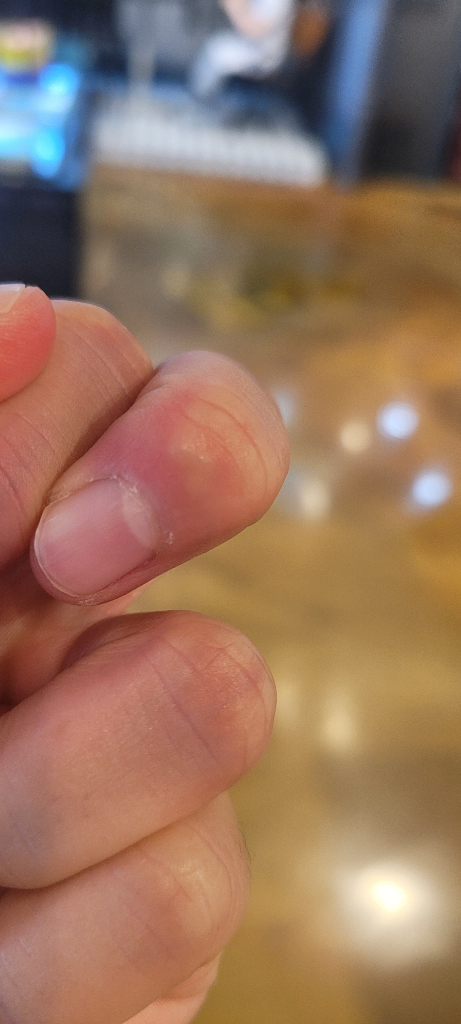 단순 포진 또는 한포진 등으로 인한 병변일 가능성이 있기 때문에 가까운 피부과에 내원하시어 정확한 진단 및 치료를 받아보시는 것이 좋겠습니다.