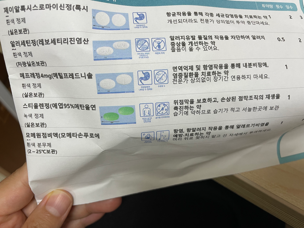 아래 사진이 처방받은 약들입니다