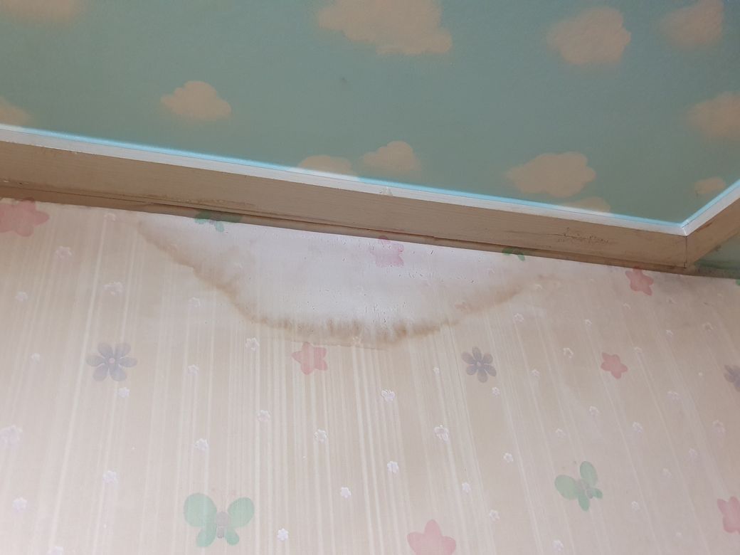 아랫집인 저희 집 방이, 천장이머 천장과 이어진 벽이며 얼룩이 생겼습니다.