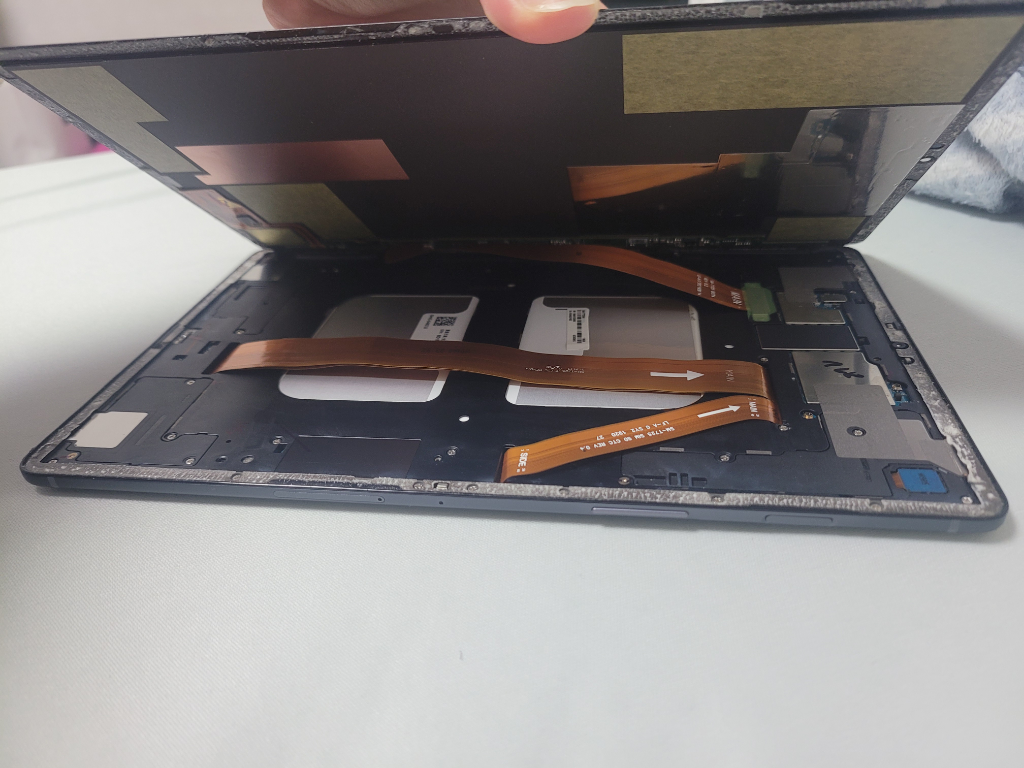 사진처럼 테블릿 액정과 기판이 떨어지려하는데