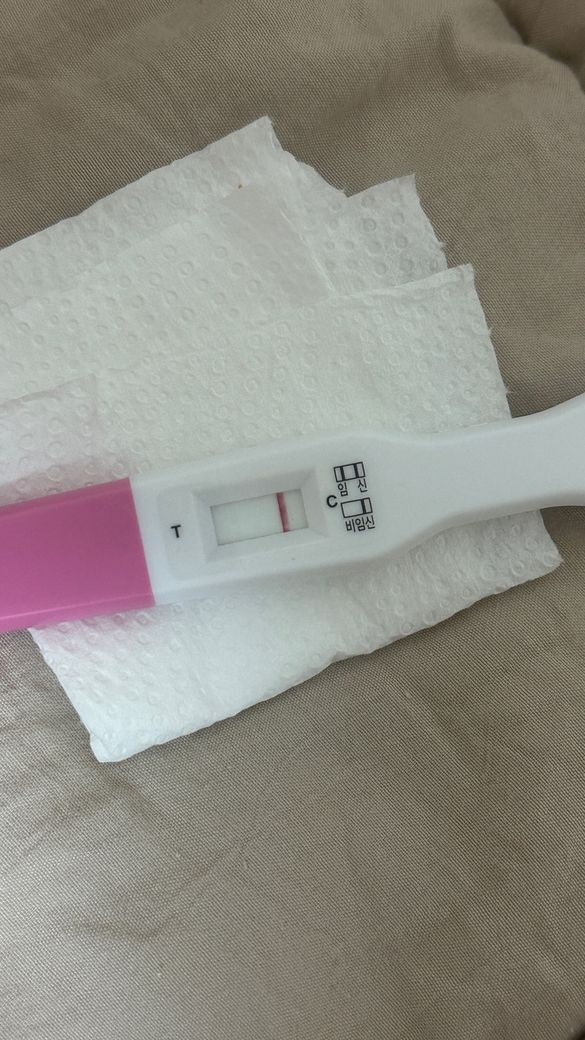 이틀에 걸쳐 두번 해봤는데 사진처럼 나옵니다 사진으로 봤을 때는 잘 안 보이긴 하지만 빛에 비춰서 보이면 두줄로 보이는데 임신 가능성 있을까요?