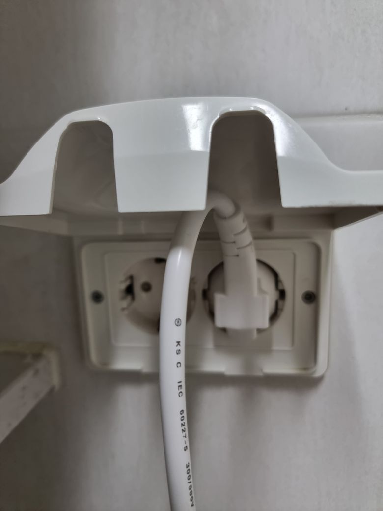 코드를 바른 모양대로 꽂으면 전기가 흐르는데 코드를 반대로 돌리면 전기가 안흐릅니다. (사진 첨부. 이렇게 꽂아야 안흘러요)
