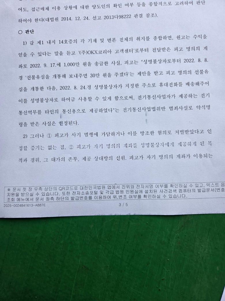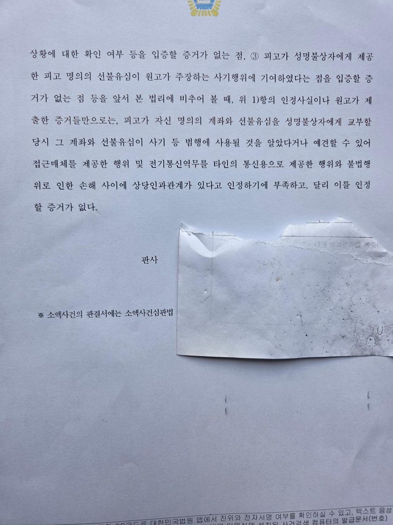 댓가를 받고 유심칩이외 정보제공을 다해주었는데 범행에 가담/방조한 혐의를 인정할수가없다는게