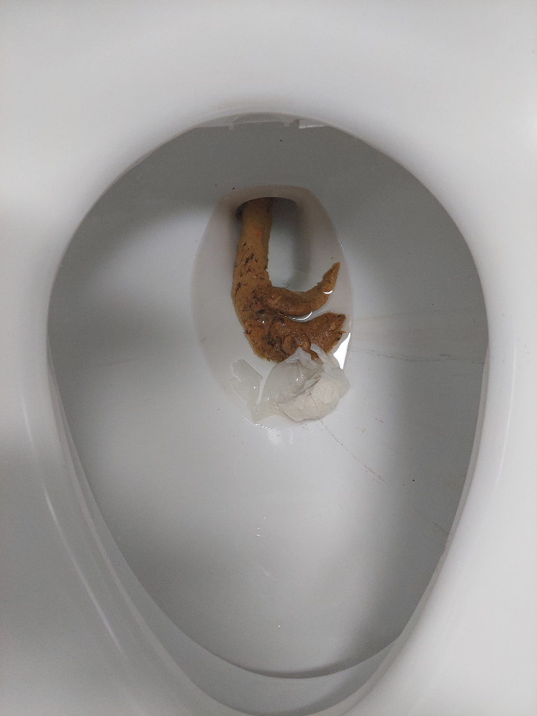 정상변 옆의 가느다란 변은 변의 양이 적어서 그런 것이고, 정상변이 건강하게 배설되는 상황이므로 이 대변사진만 가지고 대장암을 의심할 수 없습니다.