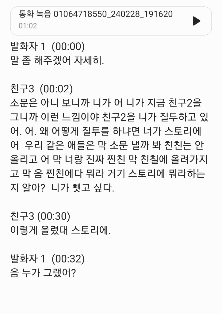 그러고 한시간 뒤에 친구3한테서 미안하다고 연락이 왔고 실컷 까고 왜 미안하나고 물어보았고 자초지종을 물었습니다. 친구1이 쉼터에서 픽션이였다고 말했다는겁니다.