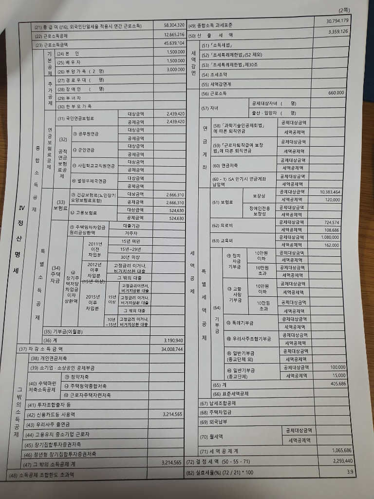 그리고 정산명세에 보면 신용카드등 사용액에 현금영수증 금액도 포함된건가요? 이항목에서는 현금영수증 사용금액이 안나와잇네요... 세액공제 금액인건가요?