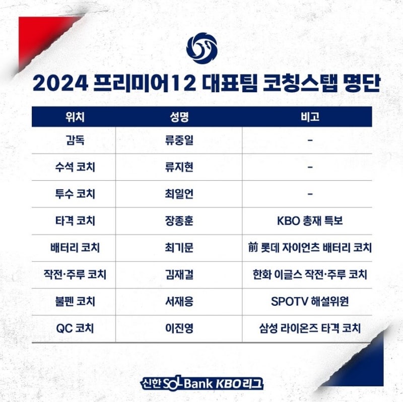 감독 코치들의 명단은 어떻게 되며 각각 맡은 보직은 무엇인가요?