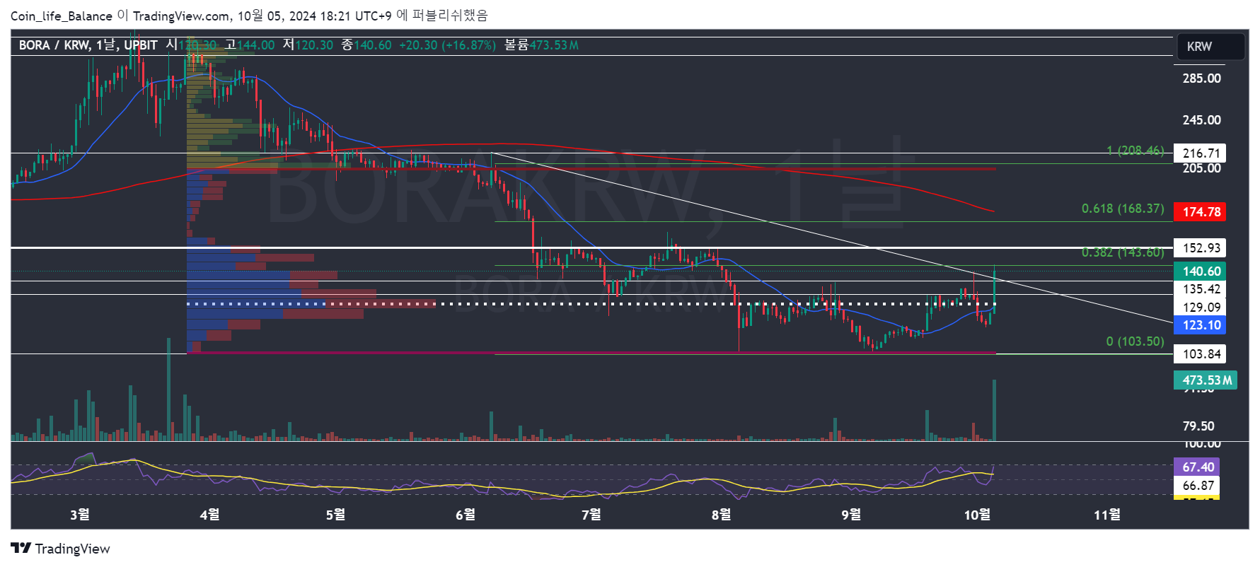 갑자기 빗썸에서 보니 BORA(보라)가 잠잠하다가 오늘 급등하는데 이슈가 있는지 궁금합니다. 그리고 그 이슈가 당분간 가격 상승을 견인할만한 것인지 아니면 저가 매수 수준인지 궁금하네요. 전문가분들의 의견 부탁드립니다.