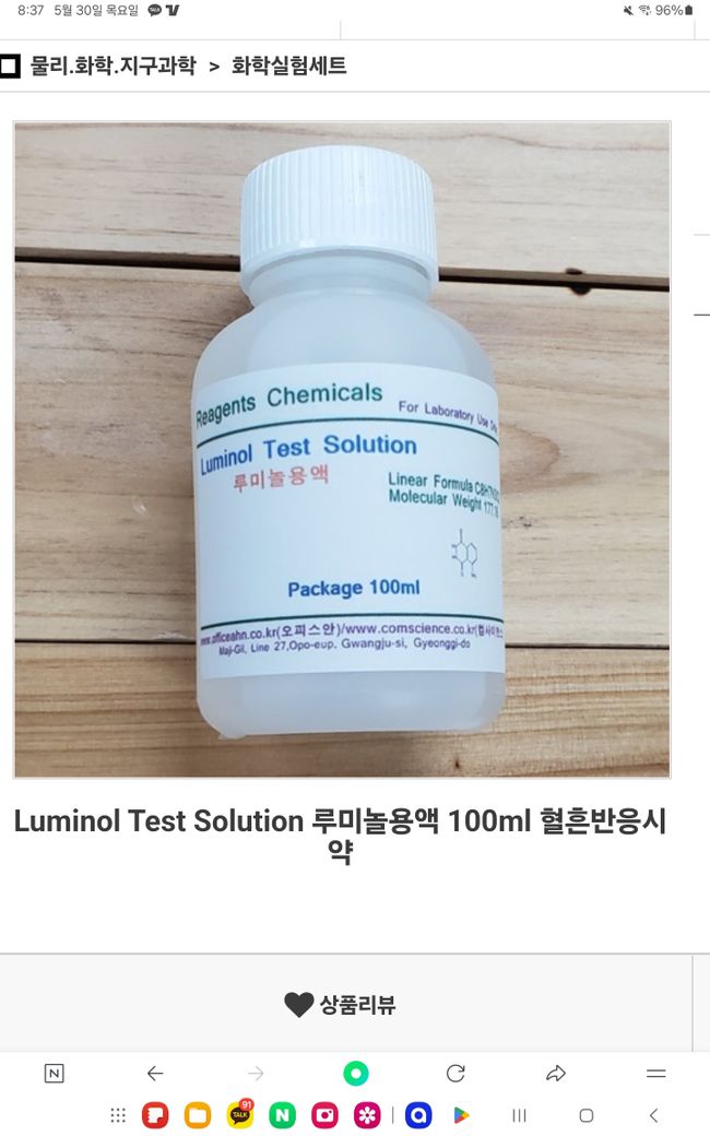 직접 만드는 루미놀 용액과 시중에 파는 루미놀 용액 역시 둘다 사람이 만든 제품 입니다.
