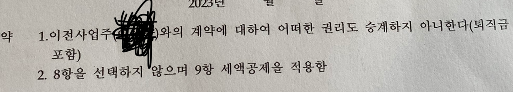 해당 계약서를 작성할 경우 인수전 과거 근무기간에 대해 계속근무를 주장할 수 없습니다. 따라서 퇴직금을 받지 못하게 됩니다.